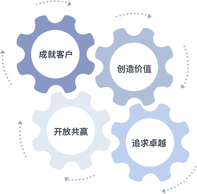 成就客户是一切决策的出发点,,,,创造价值是衡量所有工作的标准,,追求卓越是龙源国际做事做人的态度,,,开放共赢是龙源国际的格局也是最终的结果。。。。价值观的齿轮环环相扣,,推动着组织里的每个人不断向前。。